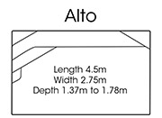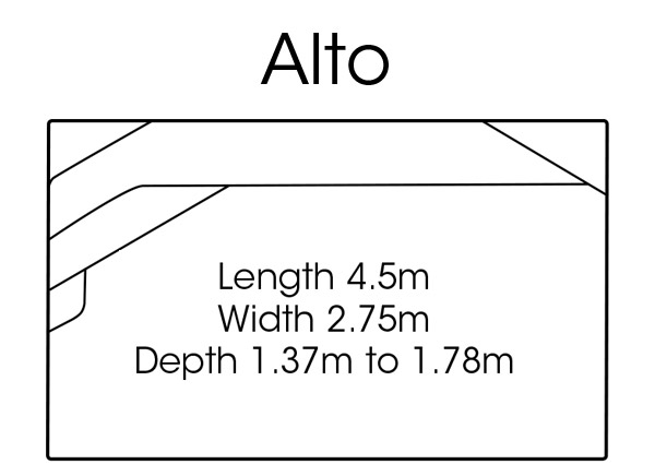 The Alto is the sixth model in our best-selling Piazza Series. At just 4.5m x 2.75m it is suited to compact areas where space is precious but a pool is a must-have. A redeeming feature of the Alto is its generous depth of 1.37m – 1.78m, making it a genuine plunge pool that will keep you cool and relaxed all summer.