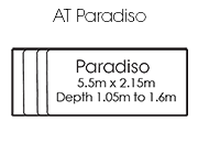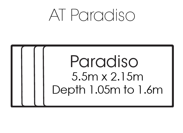 The Paradiso has been designed with small outdoor spaces in mind. Only 2.15m wide, this pool has a slim design that’s perfect for narrow spaces, and extended shallow end entry steps create the ideal spot for you and your family to relax.